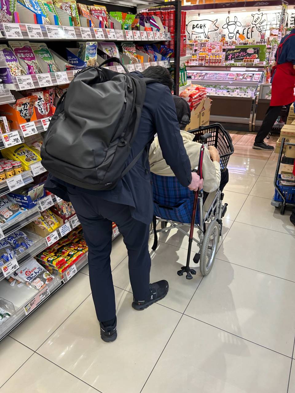 癌末期で、現在ホスピスで暮らすHさん。年末の段階では余命2か月と言われましたが、まだまだ元気です。それでも流石に車椅子に成りましたが、楽しみのお買い物です。